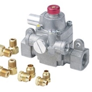 Las válvulas de gas accionadas por palanca Robertshaw® serie 720 están diseñadas para aplicaciones de encendido por piloto intermitente. Esta serie incorpora una válvula manual, una válvula piloto, dos válvulas automáticas (2) y un regulador de presión de gas principal. Los modelos Uni-Kit ® vienen ajustados de fábrica a 3,5 WC para gas natural, pero pueden convertirse a LP instalando el kit de conversión del regulador incluido. La serie 720 está diseñada para muchas aplicaciones residenciales, tales como unidades de calefacción central, calentadores, calentadores de pared, calderas y hornos de casas móviles. Esta válvula tiene un radio de giro compacto de sólo 3-9/16 que le permite adaptarse a una amplia gama de aplicaciones de sustitución OEM.