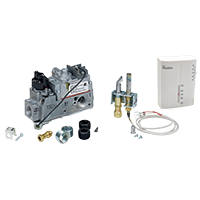 The Robertshaw 710-296 Millivolt Kit includes a low profile millivolt actuated gas valve, a pilot generator kit and an easy-to-use mechanical wall thermostat. The kit includes the Robertshaw gas valve cross reference pocket guide.